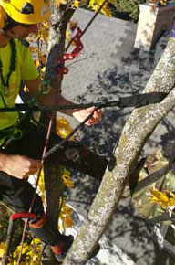 Prior to installing a support system, the tree will be pruned to reduce the weight and stress on the system. We will also use the right type of cable for the job. There are two different types of cables that can be used: one is a metal cable and the other is a synthetic cable. A rod may also be used for extra support at the weak branch union.